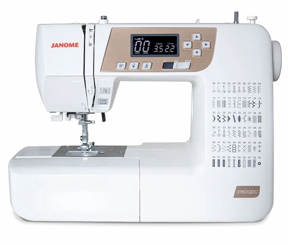 A lightweight computerized machine featuring 60 built-in stitches, six automatic buttonholes, LCD stitch panel, automatic thread cutter, and top-loading bobbin—ideal for quilters and versatile sewists.